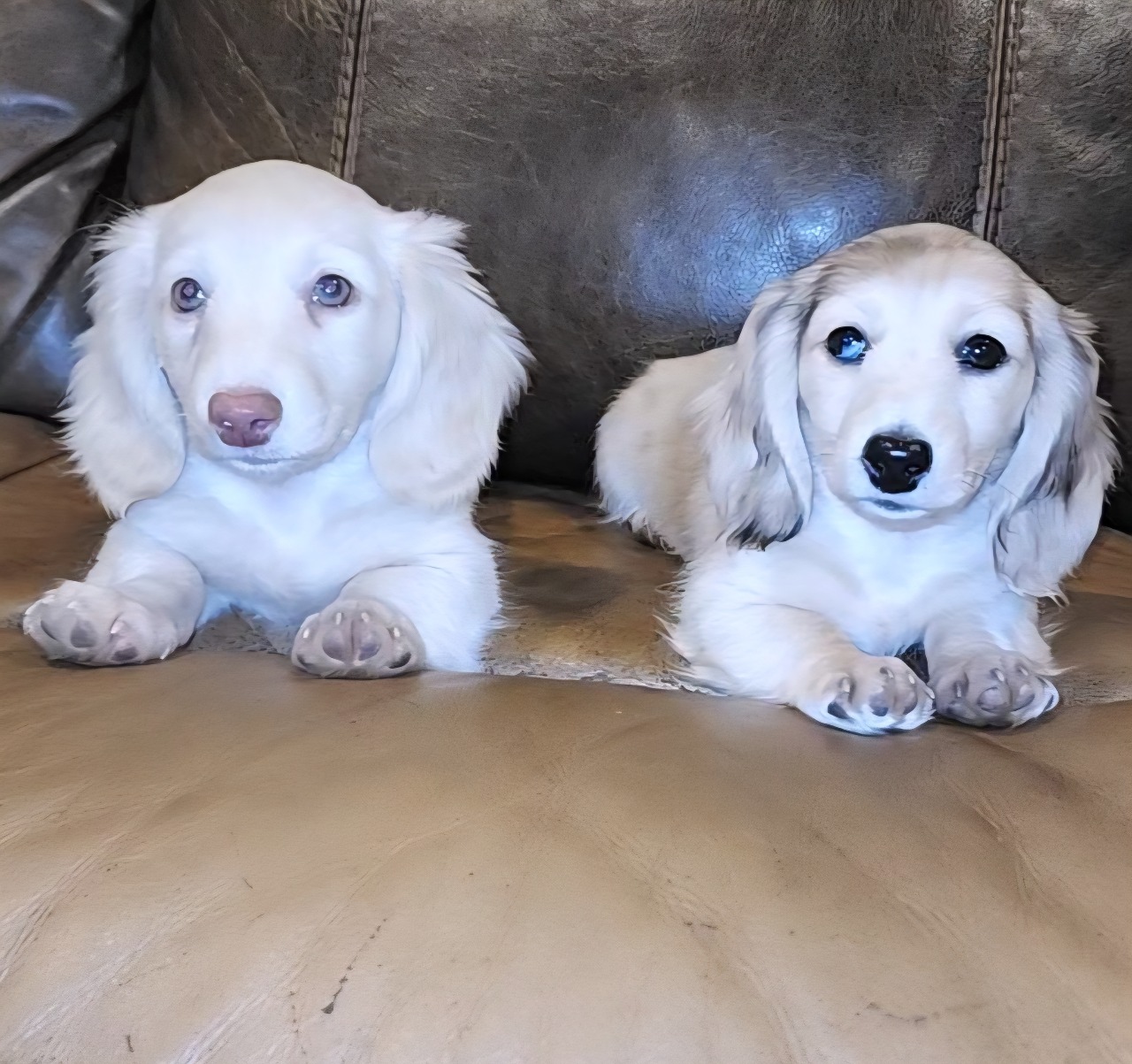 The dachshund is a breed native of Germany and were bred for hunting badgers. They exhibit three different coat types: smooth, long, and wire. Dachshunds have a wide variety of colors and patterns. Patterns include solid, dapple (merle in other breeds), piebald, sable, and brindle. The colors that dachshunds come in are, but not limited to: black and tan, chocolate and tan, red, wild boar, creme, blue and tan, isabella (fawn) and tan, and wheaten.