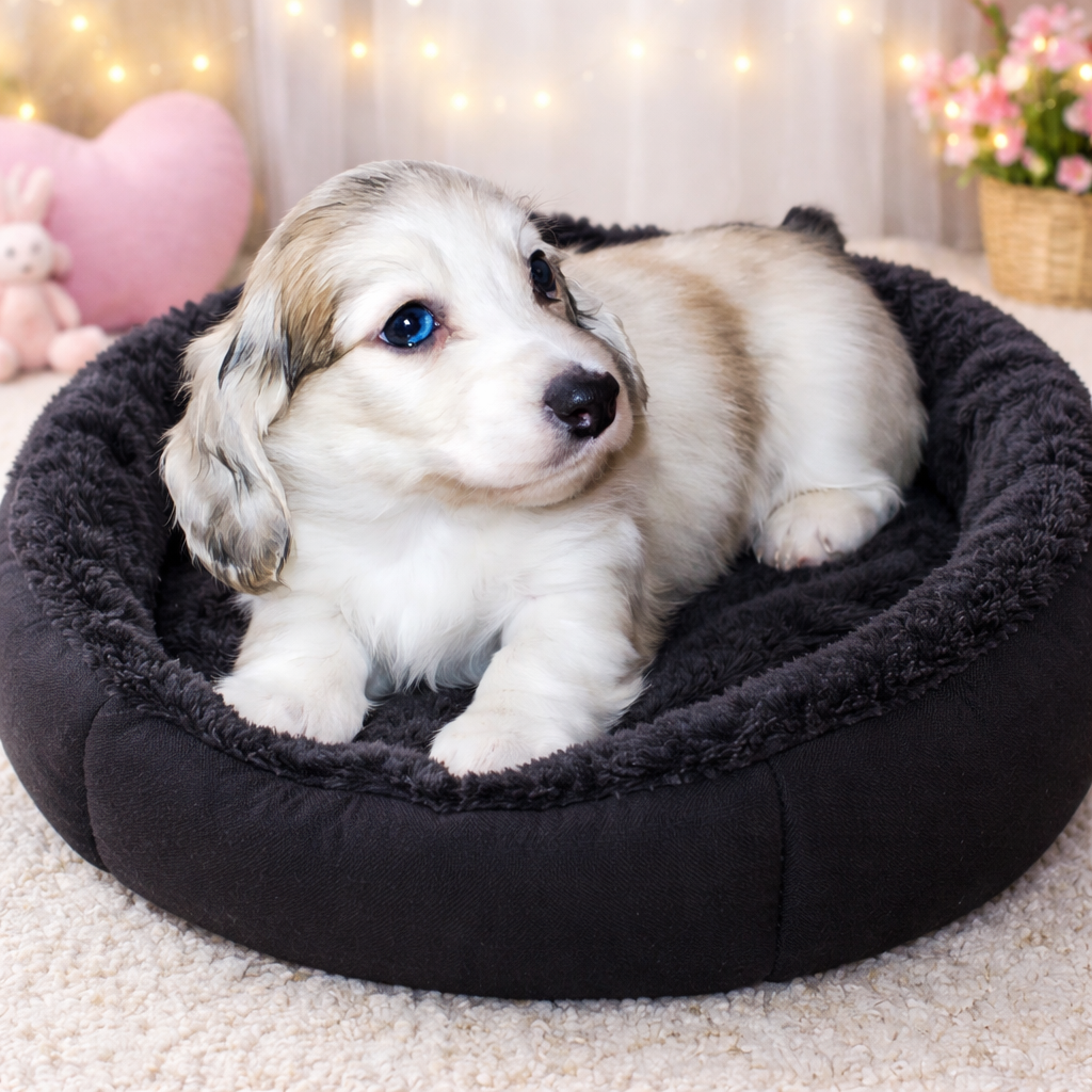 All of my puppies come with current vaccinatons and dewormings, vaccination and/or medical charts, registration paperwork, and their very own puppy pack. In my puppy pack, I include 4Health Lamb and Rice Puppy Food, first toy, and a blanket. If you are interested in a miniature dachshund, please feel free to look through my website to see if I have what you are looking for.