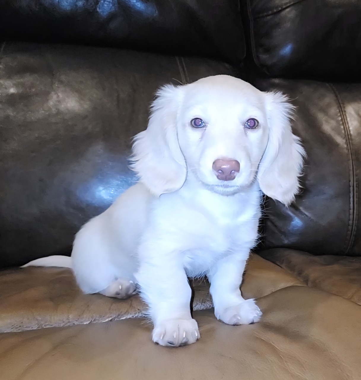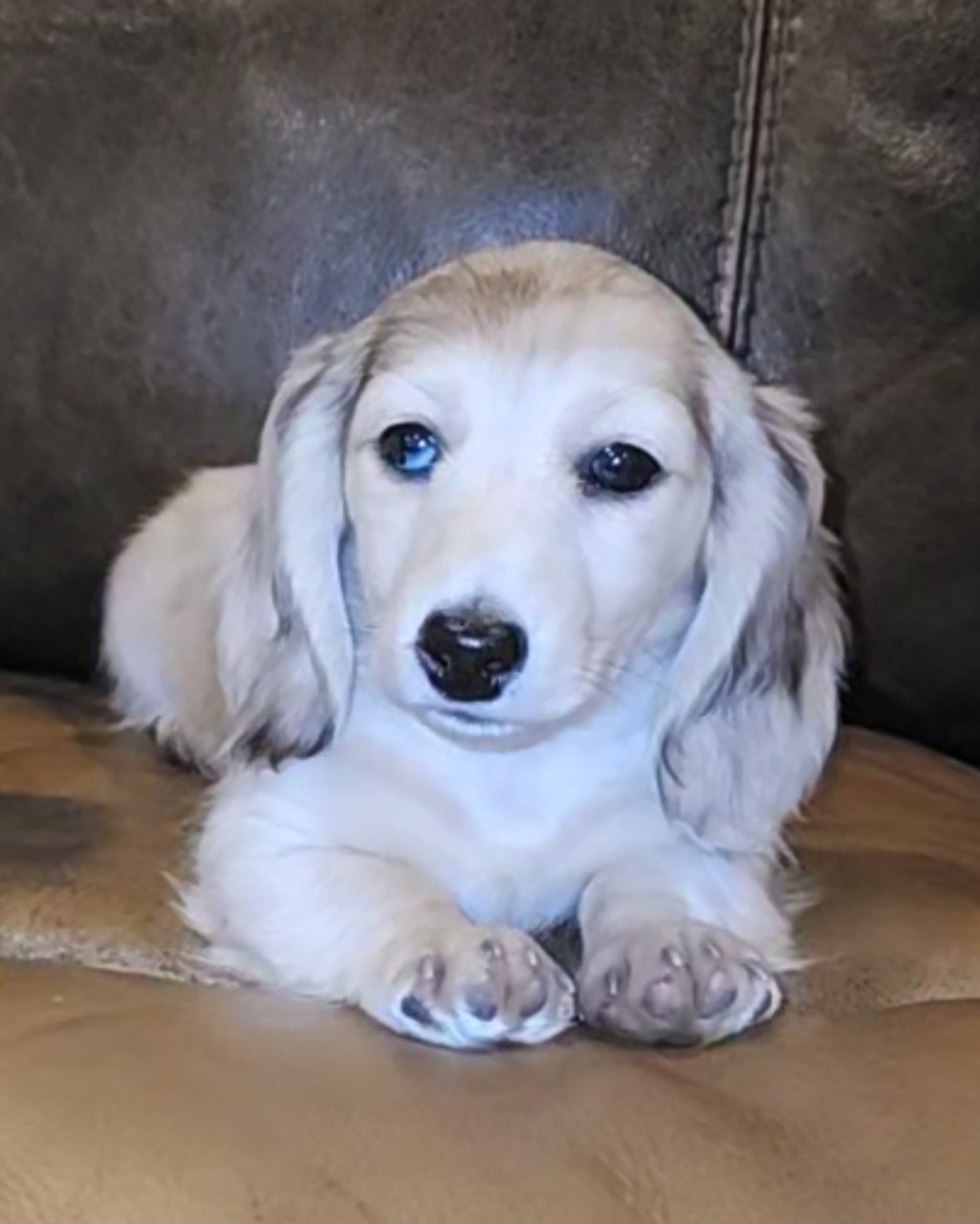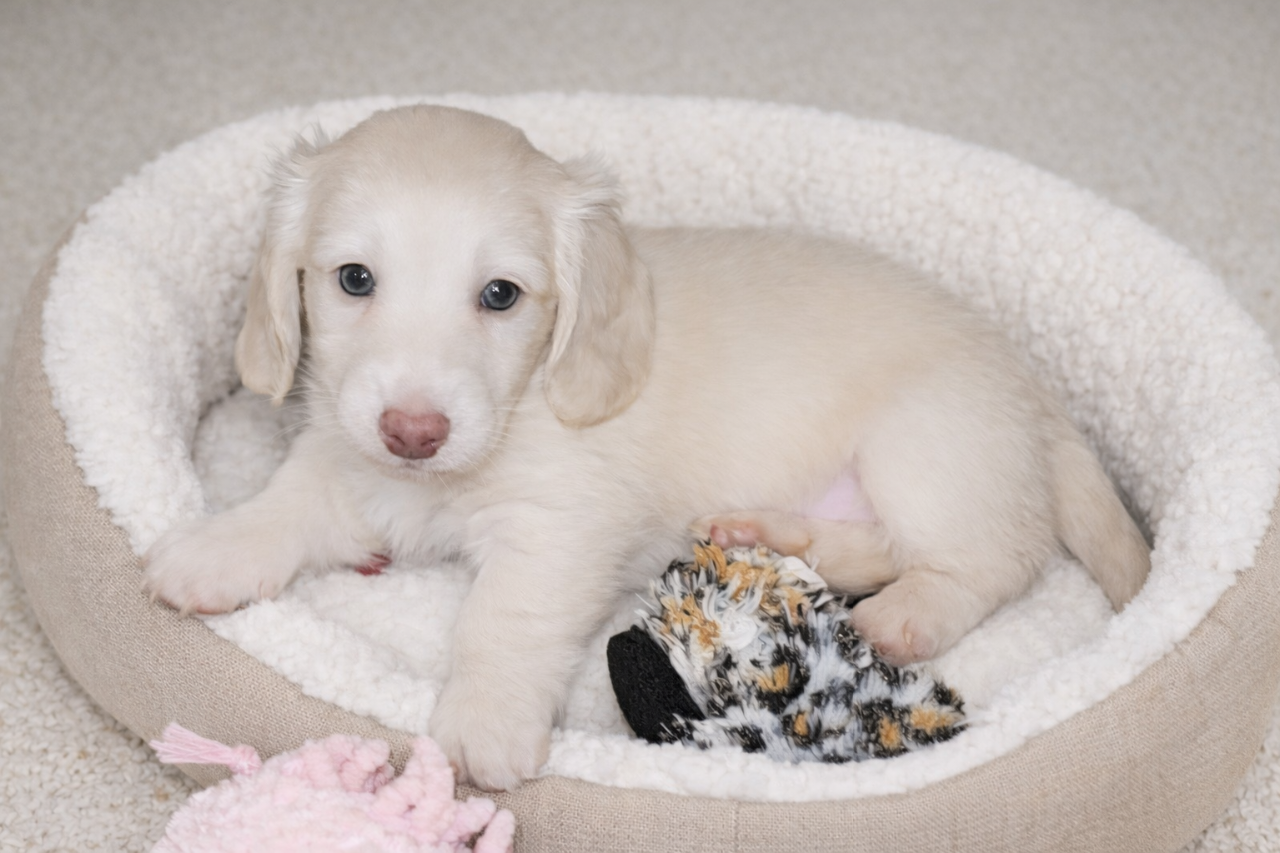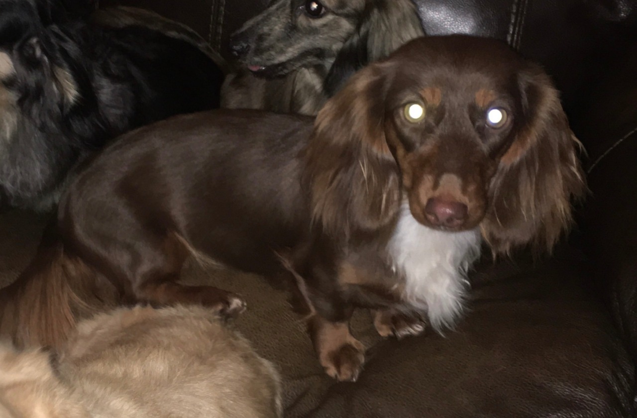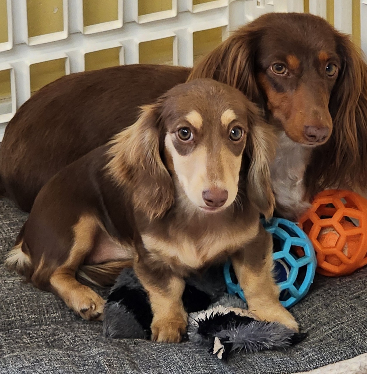 Momma: Meet Nova - She is our little buddle energy. She is so full of life but still extremely loving and sweet. Loves water like her Momma and Grandma. She loves her toys even if she occasionally kills them. She loves sun bathing on the back patio and will drive you up the wall when she wants to go lay in the sun but in true dachshund fashion she hates the cold so this will only happen on sunny days